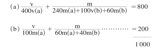II(a400v+400m)+IIb(100v+100m)=1 000;通过运动,按下列公式实现:500v(a+b)〔在400v(a)和100m(a)中实现〕+500m(a+b)〔在300m(a)+100v(b)+100m(b)中实现〕=1 000。
