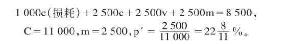 160c+40v+40m。但是在求利润率时,我们不是按周转的资本价值200来计算40m,而是按预付资本价值100来计算。因此,p′=40%。