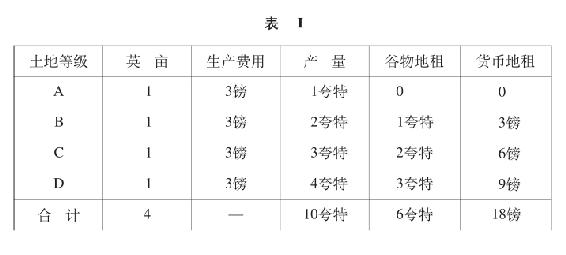 从18世纪初叶到中叶,在英国,尽管金和银的价格下降,谷物价格还是不断下降,与此同时(就整个时期来说),地租、地租总额、耕地面积、农业产量和人口都增加了。这种情况是和形成上升序列的第II表组合在一起的第I表相符合的,但这样一来,最坏土地A或者进行改良,或者不再用于种植谷物,当然这并不是说,这种土地不会用于其他农业或工业的目的。