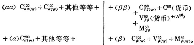 最后,等于M21(b,ββ,β)的Ⅰb、Ⅱββ、Ⅱβ的剩余价值余额,等于在Ⅰb商品上实现的V(a,αα,α)部分,也就是V21(a,αα,α)。