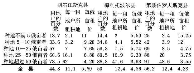 租地面积(单位俄亩)每一租地户租地面积 租地户数租地面积(单位俄亩) 每一租地户租地面积租地户数 租地面积(单位俄亩)每一租地户租地面积 租地户数租地面积(单位俄亩) 百分比每一租地户租地面积