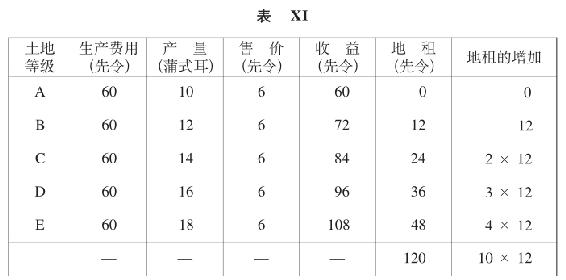 (b)B级土地不是完全没有地租(表XIV)。