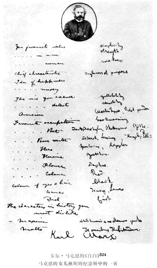 524 下面是在马克思的长女燕妮的纪念册中保存下来的马克思的《自白》的一种文本(见注523)的译文:
