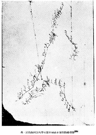 280 “从巴黎到伯尔尼”的手稿上附有两张恩格斯亲笔画的关于他所经过的路线的草图。这两张草图画的是恩格斯从奥克萨里(法国)到勒-洛克尔(瑞士)的行程的一部分。